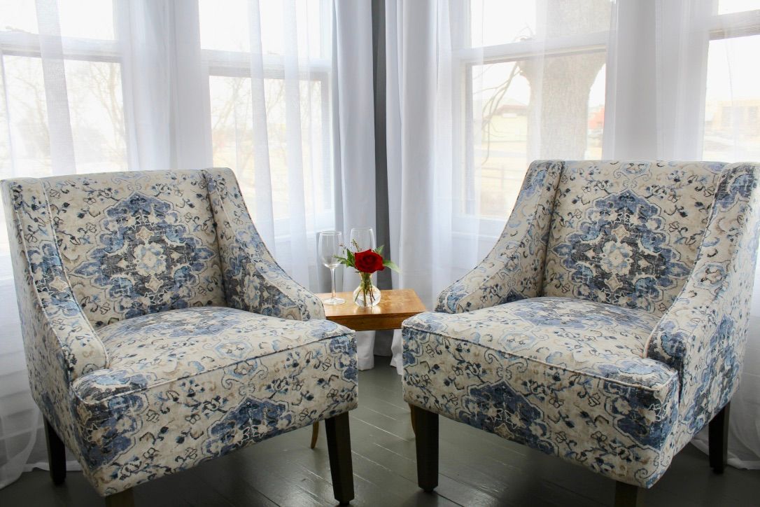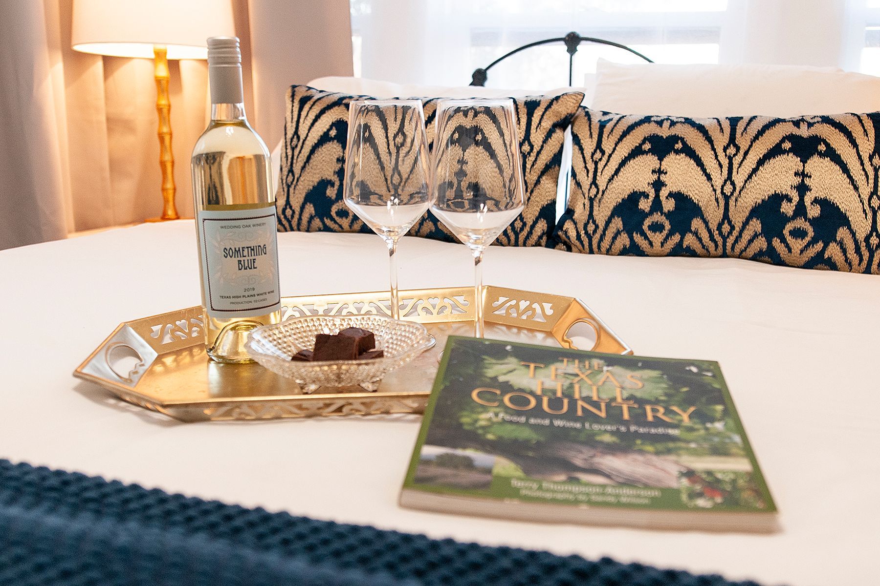 Stay in one of our six newly renovated elegant suites that range from king-size beds to queen-size beds. Each room comes with a complimentary breakfast of fresh baked pastries, fruit, yogurt, cereal, coffee, milk and juice in the super chic dining room or out on the most scenic patio in the hill country with views of the Llano bridge, Llano River and beautiful historic courthouse. In room amenities include high-speed internet, toiletries, cozy bathrobes and a haridryer.