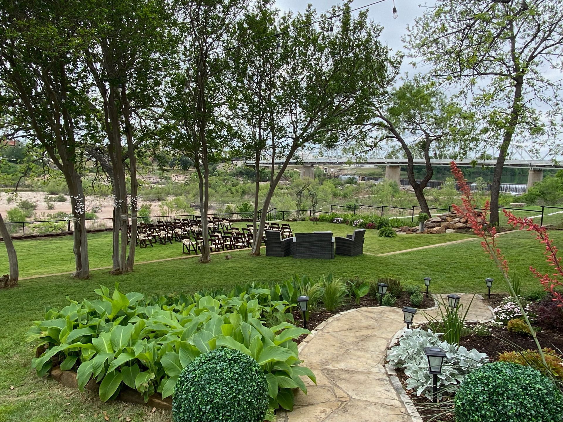 The newly renovated Dabbs Hotel offers an intimate setting for your destination wedding in the historic railroad district in Llano, Texas. For many years, The Dabbs has been a stunning river-front venue to exchange wedding vows and celebrate significant moments. It's an extraordinary setting at a great value for your money. We offer a picturesque ceremony in the beautifully landscaped green luscious lawns along the Llano River, Roy Inks Bridge and magnificent courthouse in the background.
